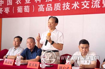 中国农业科技下乡专家团副团长、原农业部科技入户园艺作物首席专家、中国农科院蔬菜花卉研究所研究员、博士生导师张志斌致欢迎词。他谈到,大荔县是全国设施冬枣的优势生产区,现种植面积42万亩,光热资源丰富,昼夜温差大,形成了成熟更早、品质更优,糖分含量超22%、可食用果粒近95%、维生素C含量达352mg/100g。大荔冬枣营养价值为“百果之冠”。但近些年来,因缺乏标准化绿色生产技术规程,产品难以达到高质量品质。必须通过科技创新,应用安全无污染投入品加绿色生产技术,进一步提高产品质量。提供市场优质产品,才能提高果农收入。组织起枣农打高品质市场,联合产业兴、抱团闯市场是大荔果品产业的最终出路。为响应国家农业高质量发展的目标和要求,专家团开展优选产品科技下乡活动,把服务农业做精品、助力农民选好品作为重点工作内容之一,带动一方产业发展,为乡村振兴做出贡献。