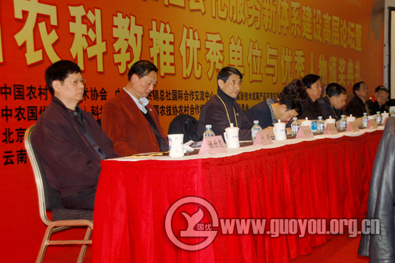 出席活动的领导与嘉宾有:科技部原副部长、中国技术市场协会会长韩德乾,中国农科院原院长、中国农业国际促进会会长翟虎渠,中国农业大学副校长、中国农村专业技术协会副理事长、中国农技协农村合作组织发展研究专业委员会主任委员傅泽田,中国科协农村专业技术服务中心副主任、中国农村专业技术协会秘书长李彦捷,农业部农村经济体制与经营管理司副巡视员赵鲲,农业部农村经济研究中心副主任、中国农业国际合作促进会副会长兼秘书长沈贵银,农业部全国农业技术推广服务中心原副主任、中国农药发展与应用协会副会长兼秘书长栗铁申,中国农科院农业资源与农业区划研究所副所长徐明岗,北京市农业局农产品质量安全处处长李文海,中国技术市场常务副会长、中农国优(北京)科技推广中心主任吕士良,中国农业电影电视中心、中国农业电影电视协会副理事长苑荣,科技部中国农村技术开发中心原副主任陈良玉,农业部园艺作物首席专家、中国农村专业技术协会常务理事张志斌,农业部全国农技中心作物栽培首席专家、中国农用塑料应用技术学会会长张真和,中国石油和化学工业联合会农化服务办公室副主任吴一,中国科协农村专业技术服务中心发展处处长、中国农村专业技术协会副秘书长徐亚丽,副处长叶珊,吉林长春市贸促会原副会长、中国创意农业国际合作发展高层论坛组委会副主任张凤林,人力资源和社会保障部中国就业培训技术指导中心原工会主席张凯利,中国农业大学继续教育学院院长吴加志,中国农业大学食品学院院长助理程永强教授,全国农业高新技术成果产品交流交易中心、全国农科教推优秀单位与优秀人物表彰活动组织委员会秘书长辛士,中国东盟农资商会副会长、北京办事处主任陶天军,中国老区建设促进会农工部部长王建军,中国农业科学院农业资源与农业区划研究所博士周法永,北京市土肥工作站站长赵永志,北京市农业技术推广站高级农艺师、中国农业科技下乡专家团园艺作物栽培专家曹华,北京农林科学院植物营养与资源研究所原副处长、中国农业科技下乡专家团植物营养与资环专家吴玉光,中农国优(北京)科技推广中心副主任、中国石油和化学工业联合会农化服务办公室常务副秘书长葛玉梅,河北省特色经济研究会副会长兼秘书长张希望,北京精耕天下农业科技股份有限公司董事长姚世忠,北京双通展览公司总经理郑绍蓬,农产品加工杂志社社长张成龙,中国会展杂志社总编辑兰宇鑫,新华社主任记者申清,科技日报高级记者范建,农民日报社经济发展中心副主任梅隆,中央电视台农业节目组(CCTV-7)苏威等。吴加志院长主持颁奖典礼,葛玉梅副主任宣布获奖名单,张志斌教授主持了高层论坛。