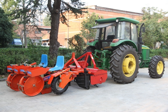 本网讯 近日,农业部南京农业机械化研究所创制出一款与75~110马力大型拖拉机配套的2ZFG-2型甘薯移栽复式作业机,可一次完成两垄的旋耕、起垄、破压茬、栽插、修垄等作业,解决了拖拉机与种植垄距的匹配性差、下田作业次数多、茬地栽插等问题,为实现甘薯耕种收全程机械化配套奠定基础。