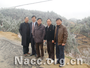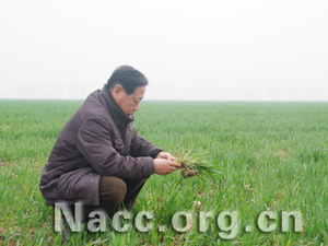 图片说明: 图1 专家团一行前往寿县涧沟镇蔬菜专业合作社考察。 图2 中国农业科技下乡专家团秘书长辛士(右一)、现代农业科技杂志社曹中凡记者、农村大市场杂志社记者黄志、安徽寿县安丰农资配送中心贾全宏经理等在了解合作社发展情况。 图3 专家团人员遇雾松留影。 图4 中国农业科技下乡专家团资环与营养专家吴玉光研究员察看麦苗长势情况。