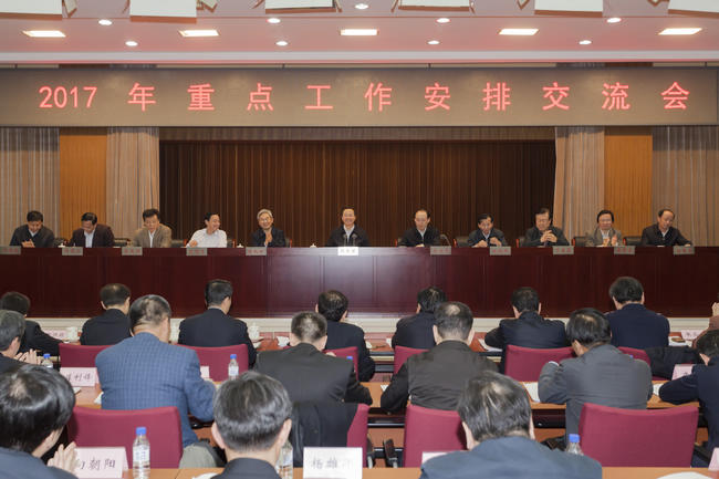 本网讯 2月3日,农业部召开2017年机关司局、派出机构重点工作安排交流会。农业部部长韩长赋在会上强调,要深刻领会、深入贯彻习近平总书记系列重要讲话精神,坚持“干”字当头、“实”字为先,抓住关键事项、关键环节、关键措施,细化、实化、“硬化”任务书、路线图、时间表,撸起袖子加油干、突出重点抓落实,推动农业供给侧结构性改革不断取得实质性进展和新成效,扎实做好党中央、国务院部署的各项工作,出色完成农业农村经济各项任务,以优异成绩迎接党的十九大胜利召开。