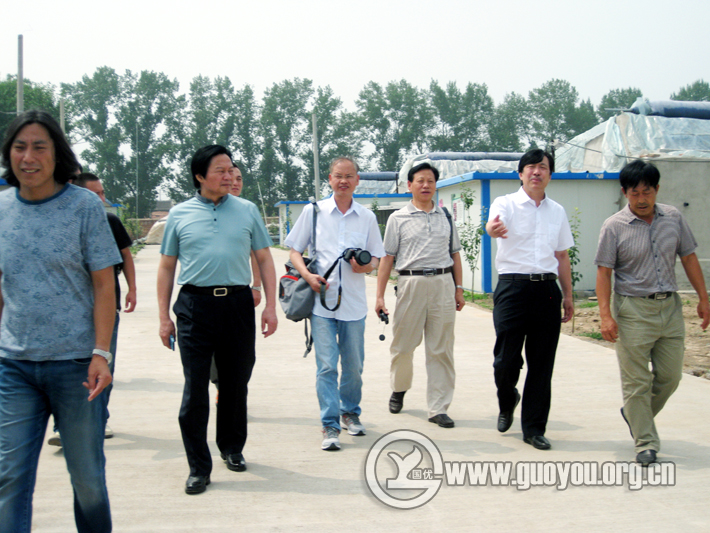 从右至左•:7月6日中国食品安全报社社长朱长学(左2)、中国农科院植保所陈福良研究员(左3)、农业部全国农业技术推广服务中心栽培首席专家张真和(右3)、全国农业高新技术成果产品交流交易中心常务副主任辛士(右2)唐家堡村村委会主任(右1 )的陪同下,参观延庆镇唐家堡设施葡萄园,该园有71个棚,棚里的葡萄生机勃勃,绿油油的叶子爬满藤蔓,成熟的葡萄一串串葡萄沉甸甸地从藤蔓上垂下来。有藤稔、夜美人、摩尔多瓦、夏黑等50多种来自全国和世界葡萄主产区的葡萄新品种。