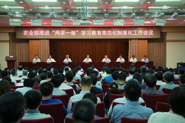 本网讯 5月27日,农业部召开推进“两学一做”学习教育常态化制度化工作会议,传达学习习近平总书记对推进“两学一做”学习教育常态化制度化重要指示精神,对农业部学习教育常态化制度化进行部署。农业部党组书记、部长韩长赋在会上强调,要认真学习、深入贯彻习近平总书记重要指示精神,深刻认识推进“两学一做”学习教育常态化制度化的重大意义,更加紧密地团结在以习近平同志为核心的党中央周围,奋发有为,努力工作,扎实推进“两学一做”学习教育常态化制度化,推动农业部全面从严治党水平进一步提升,以全面从严治党的新成效迎接党的十九大胜利召开。
