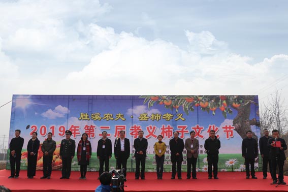 秋去冬来万物休,唯有柿树挂灯笼。欲问谁家怎不摘,等到风霜甜不溜。11月9日上午,“胜溪农夫盛柿孝义2019年第二届中国孝义柿子文化节”在山西省孝义市兑镇镇产树原村胜溪惠民生态农业专业合作社千亩牛心柿子生产加工基地盛大开幕。中国农业大学国家大学科技园创业导师、全国农业高新技术成果产品交流交易中心常务副主任、中国创意农业国际合作与发展高层论坛组委会秘书长辛士和省有关部门以及孝义市市镇领导应邀出席开幕式。